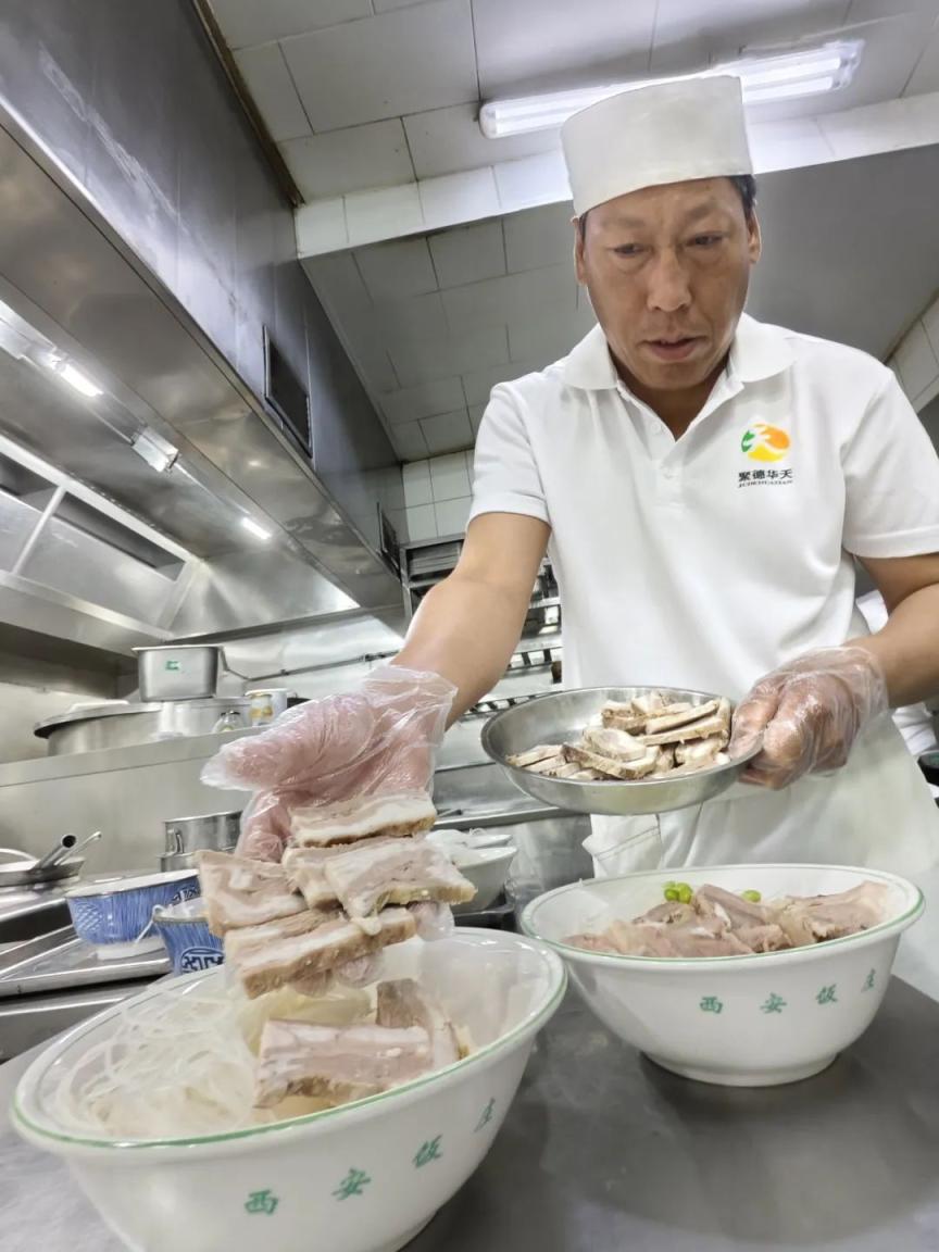 老西安饭庄推出了羊腩版的泡馍。老西安饭庄经理白穆沙介绍:“泡馍讲究汤宽肉美,羊腩肥瘦相间,最适宜煮泡馍,是不少人的最爱,所以我们赶在立秋前推出了这款新品。”